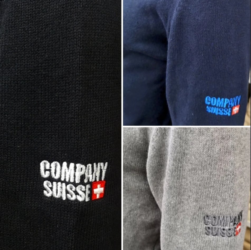 Our Company Suisse logo is embroidered on the upper left arm in contrasting colours with sizes available from XS to 2XL.